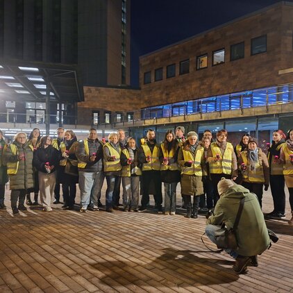 Mit einer eindrucksvollen Lichterkette haben am heutigen Sonntagabend zahlreiche Beschäftigte, ihre Familien sowie viele Bürgerinnen und Bürger der Stadt ein starkes Zeichen gegen die Schließung des Congress Hotel Chemnitz gesetzt. Von 18 bis 19 Uhr umringten die Teilnehmenden das Gebäude des Hotels und ließen unter dem Motto „Gemeinsam mit Herz: Investieren statt ruinieren. Damit die Lichter weiter brennen.“ eine Kette aus Kerzenlichtern entstehen.