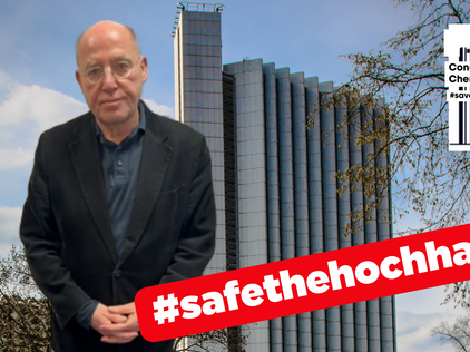Unter dem Hashtag #savethehochhaus rufen die Beschäftigten und ihre Gewerkschaft NGG ehemalige Gäste des Hauses auf, in den sozialen Medien ihre Erlebnisse des Aufenthalts zu schildern und eine Botschaft für den Fortbetrieb des 97 Meter hohen Wahrzeichens der Stadt zu senden.
